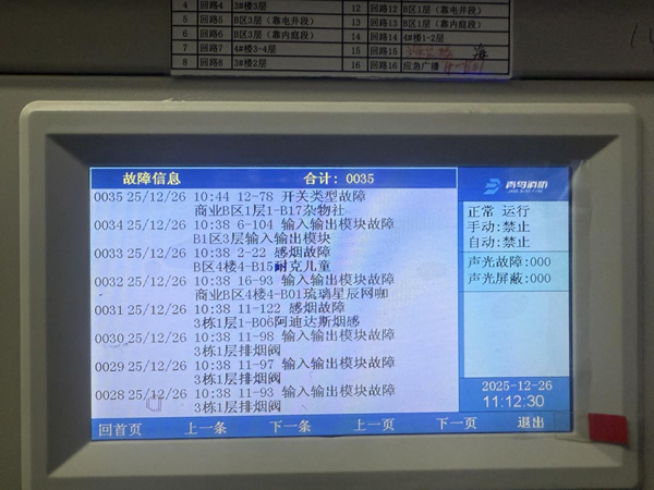 隐患问题:消防控制室主机有35个故障点;楼顶稳压泵控制柜打在手动上;部分楼层疏散指示、应急照明灯损坏;消防控制室值班记录未如实记录火警及处理情况。