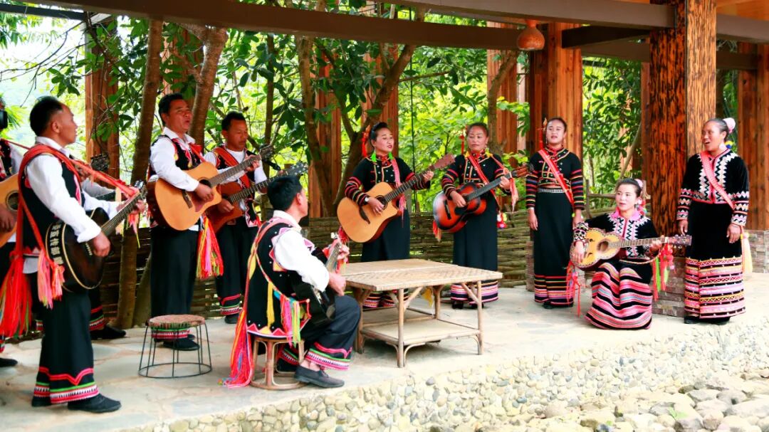 普洱市澜沧拉祜族自治县老达保村村民在排练音乐节目。李晓维 摄