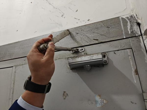 隐患问题:消防控制室有供水管网穿过;部分防火门闭门器损坏;消防控制室值班人员未持证上岗、未落实24小时值班值守制度;楼梯间堆放可燃物品。