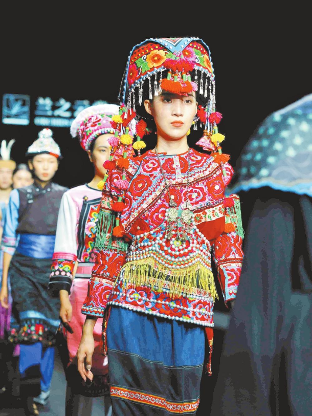 彝绣服饰亮相“兰之云裳”中外非遗服饰秀国际文化交流活动。 通讯员 王洪 摄