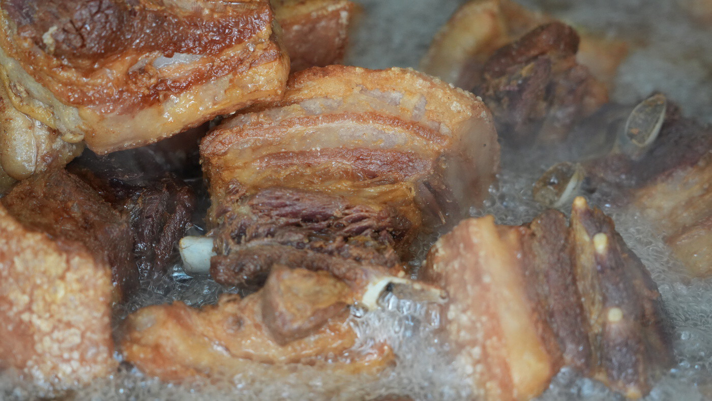 时值腊月,年味渐浓。在文山壮族苗族自治州马关县的大街小巷,一股浓郁醇厚的油香悄然弥漫,家家户户陆续开启油炸肉的制作,金黄酥脆的色泽、咸香诱人的味道,不仅是新春餐桌上的“硬菜”,更串联起一代代马关人温暖的年味记忆。