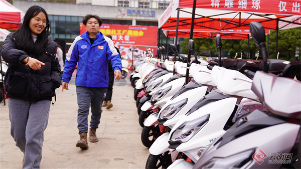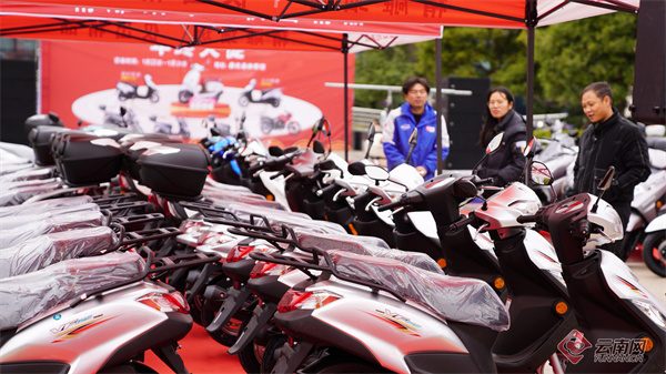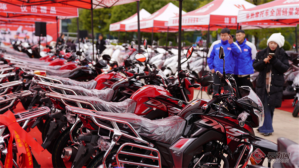 近日,昭通市彝良县一摩托车商家举行年终大促营销活动,吸引消费者前来选购心仪的摩托车。