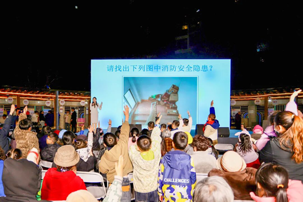 “家中油锅起火怎么扑救?”“电动自行车充电不宜超过几小时?”“谁能指出图中的消防隐患?”在“群众消防大舞台”活动中,消防知识有奖问答环节深受群众喜爱,群众通过看图找隐患、趣味抢答等赢取消防主题文创奖品,收获了更多消防安全知识。