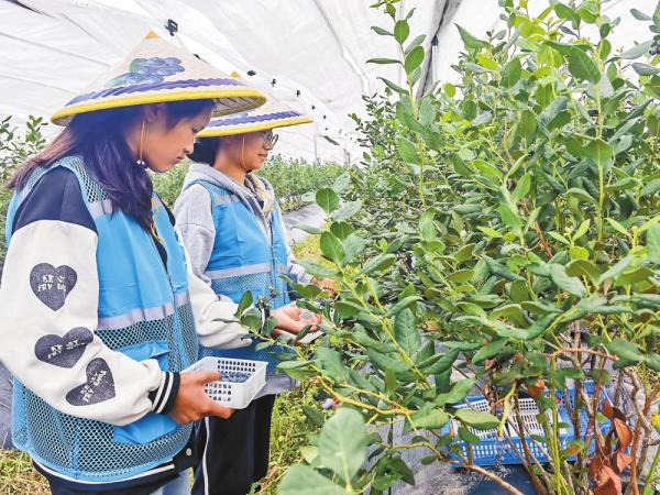 工作人员在高原特色现代农业产业示范园内采摘蓝莓。通讯员 和倩 摄