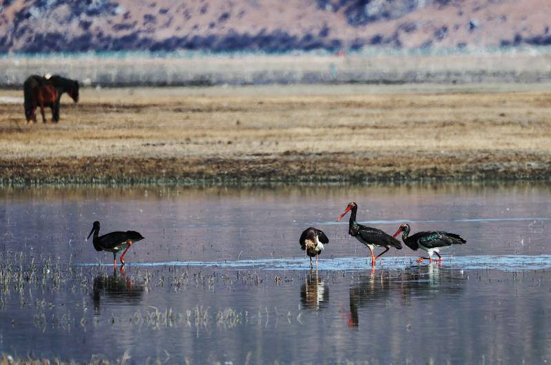 2月2日是第30个“世界湿地日”。在香格里拉的纳帕海湿地,一幅生动的生态画卷正在展开:成群的黑颈鹤与黑鹳在浅水区悠然觅食,各类野鸭在湖中巡游,斑头雁划过长空。