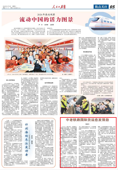 2月4日,人民日报海外版关注中老铁路国际货运愈发强劲。原文如下↓