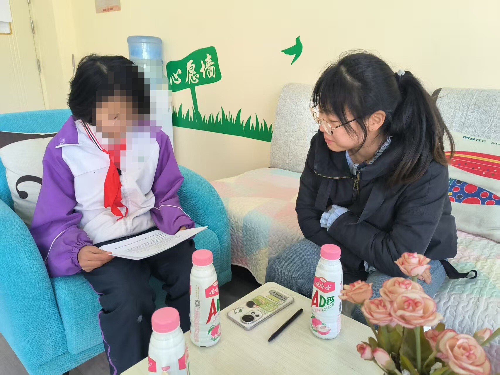 在做好学校制度建设,科学化功能分区,构建安全舒适温馨校园环境,配齐专职心理教师、心理咨询场地和心理健康课程,在师资、课程、社会资源等多方面为学生心理健康教育提供制度保障,落实每天体育活动基础上,面向所有学生开展激发积极学习兴趣、调节学习情绪、构建友善人际关系的辅导、主题课堂,文艺、体育、劳动课堂社会实践等各种活动,增强学生在校的成就感、愉悦感,及进行教师学生心理健康教育业务培训,给予家长减少亲子冲突教育指导等源头上熔断焦虑举措,为每一名学生提供展示机会,给普通孩子更多肯定与掌声,有意识培养学生积极心理品质,促进让每一名学生在阳光下成长落实。
