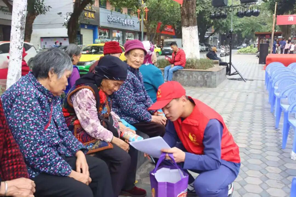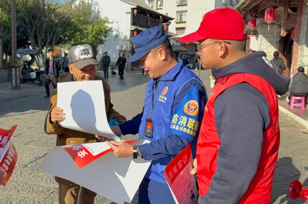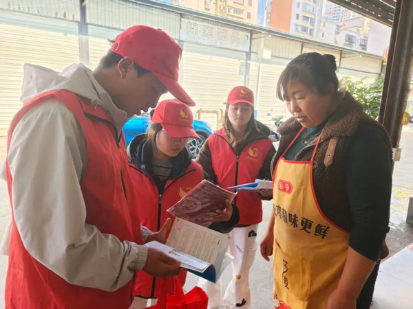 在志愿服务工作中,志愿者利用农村赶集日、商圈人流高峰等关键节点为群众发放消防宣传资料,演示灭火器等消防器材的使用方法,用方言讲解消防安全常识。