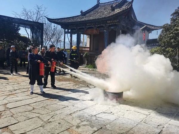 保山市消防救援支队依托“院坝课堂”走进宗教场所,针对木质构件多、香火频繁等风险,以“理论+实操+实景”模式,讲案例、教设施使用、练疏散,提升管理人员和教职人员意识与应急能力。