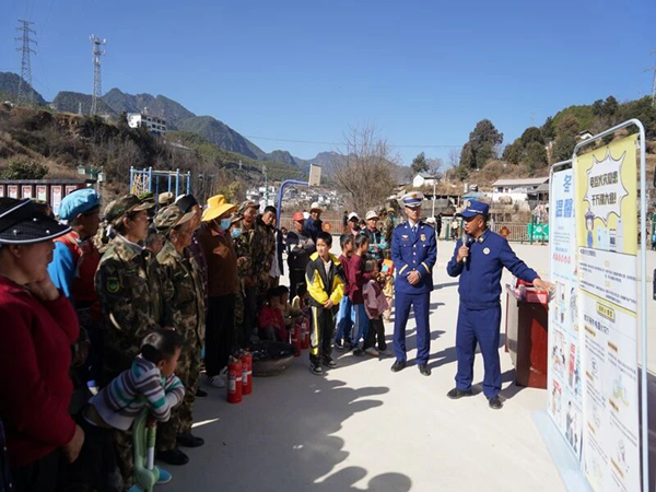 大理州消防救援支队开展消防宣传进村入户,各县(市)利用乡镇“一队一站”敲门入户查隐患、讲防火,提醒用火用电用气安全。同时消防宣传员进农家院落开“院坝课堂”,在火塘边“拉家常”,讲案例、教灭火器及防烟面罩使用。支队还利用应急广播播放“彝、白、汉”三种民族语言防火提示,覆盖全州8922个接收点,让消防知识融入村民日常。