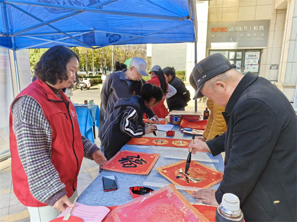 迎新春送祝福,暖民心聚情谊。海屯路社区党委以“迎新春、送祝福、暖民心”为核心,开展多元新春活动。墨香传福环节,书法爱好者挥毫泼墨,将马年期许凝于笔端,社区工作人员与党员志愿者默契配合,让手写春联的年味直达家家户户;温情慰问中,工作人员与志愿者走访困难群众,促膝长谈问冷暖、听诉求、鼓信心,把关怀精准送达;童趣满园板块,邀请康馨幼儿园老师组织故事会、趣味游戏、手工制作和美食品尝活动,亲子同乐间,让孩子们感受传统年味,增进邻里情谊。
