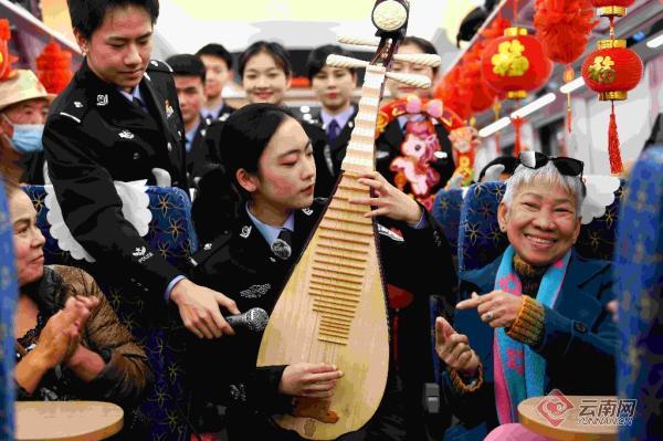 “让旅客一上车就感受到中国年的味道。”民警马淳耀踮着脚贴横幅。上车的旅客也上前帮忙,白发苍苍的旅客张大爷和余大姐拿着灯笼,细心调整位置,活泼的小朋友围着民警转。在民警与旅客齐心协力下,7号车厢很快被大家装点成临时舞台,一串串红灯笼沿着行李架依次悬挂,映得车厢暖意融融。