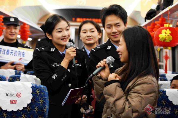 当日的“列车春晚”还设置了有奖问答环节,民警巧妙地将安全普法宣传、急救知识“面对面”教学穿插在节目中,旅客们踊跃参与,气氛热烈。