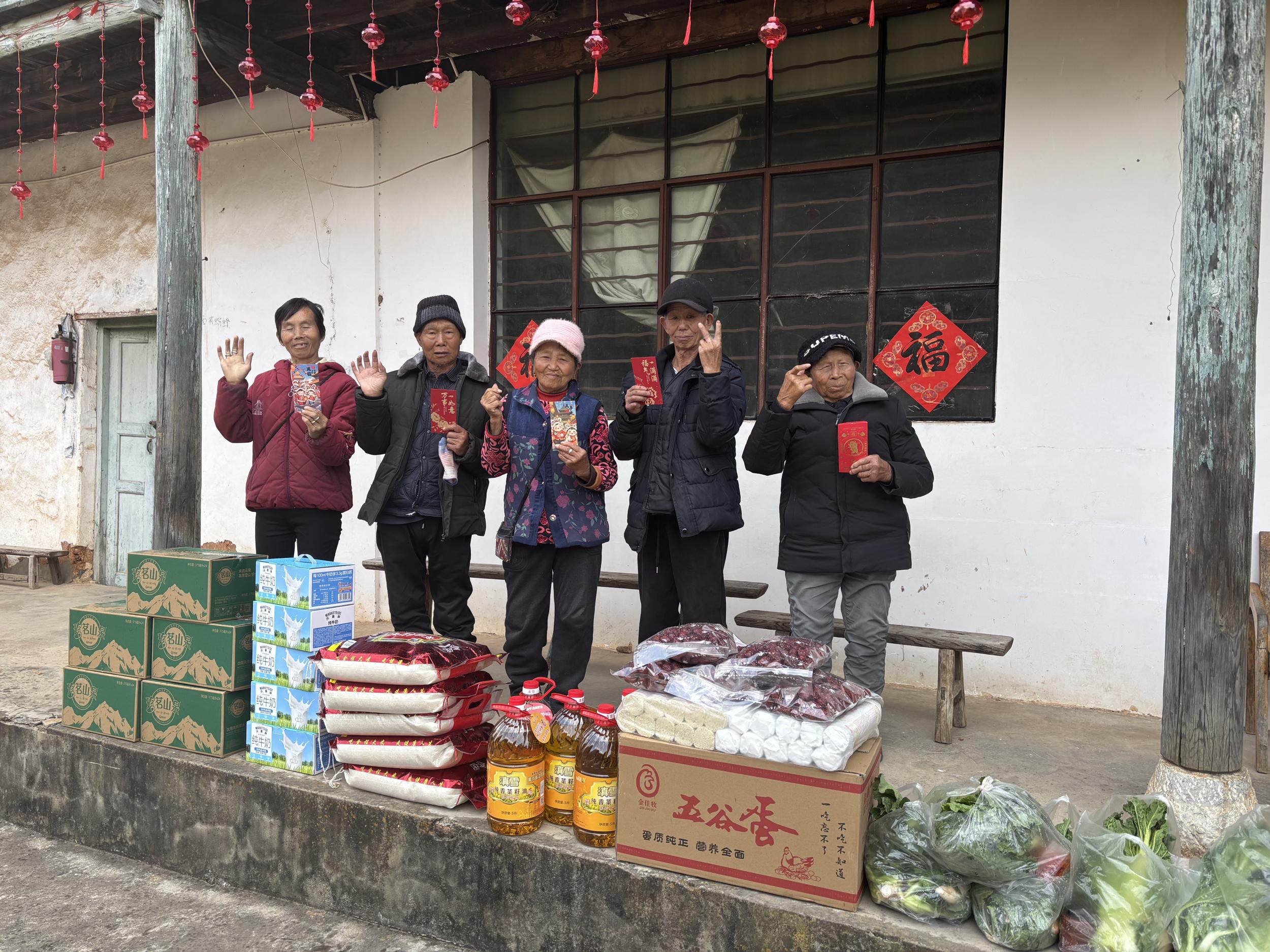 2月8日清晨,72岁的昆明市道德模范代琼兰亲自驾车带队奔赴易门县康复村,爱心团队送上崭新床品、新衣,亲手为老人铺床换装、张贴春联,并递上红包与慰问品。当日下午,团队马不停蹄赶往富民县康复村,为5位老人送去同款温暖。