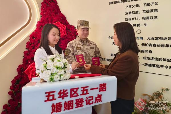 在新春佳节即将到来之际,将传统文化传承、专业婚姻家庭辅导与便民暖心服务有机结合,旨在提升政务服务的温度与品质,积极倡导文明健康、简约适度的婚俗新风。截至2月14日17:00,五华区政务服务中心婚姻登记窗口和五一路婚姻登记点共办理结婚登记153对,现场秩序井然、爱意满满。下一步,五华区将持续优化婚姻登记服务,不断丰富服务内容、创新服务形式,切实提升群众办事的获得感、幸福感与满意度。