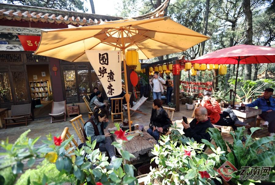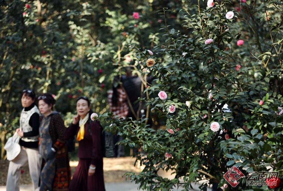 大年初二,昆明市金殿名胜区内阳光明媚,游人如织。40万株、1200多种山茶盛放,红粉缀枝、艳压群芳。趁着好天气,市民携老扶幼,共赴一场名花之约,在赏花、游园、品茶咖中享受着春日之美。