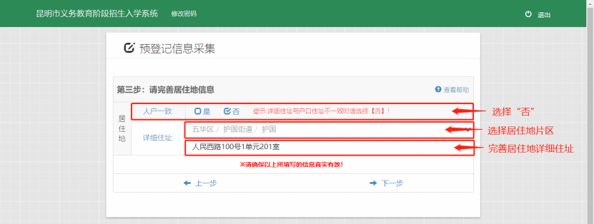 第三步:完善居住信息
