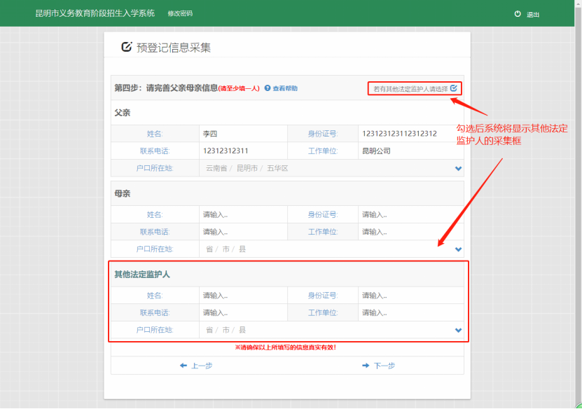 第四步:完善监护人信息