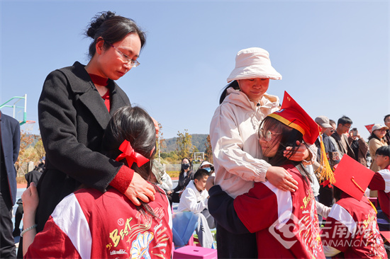 “正衣冠,明事理。”在庄重的成人礼环节,同学们向父母行拜礼,一拜养育之恩,二拜教导之情,三拜表达对父母的珍重之意。望着眼前已然长大的孩子,不少家长眼眶湿润,有的刚开口说上几句,便哽咽着将孩子拥入怀中。人群中,还有一些年幼的身影格外引人注目。不少家长特意带着家里更小的孩子来到现场,让他们一同感受这庄重而温暖的时刻。“带弟弟来,是想让他看看姐姐长大了的担当,也提前感受一下努力的意义。”一位家长轻声说。这一刻,不仅是一场仪式的完成,更是一堂关于感恩与责任的实践课,让即将奔赴考场的学子们在庄重氛围中真切体会成长的分量,也让年幼的心灵悄然种下关于奋斗的种子。
