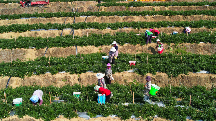为了让乡亲们共享产业红利,当地规范土地流转流程,每亩700—800元的租金按时足额发放,让“土地躺赚”成为现实。更重要的是,基地坚持“家门口就业”导向,通过“租地+保底收购+技术指导”模式,优先吸纳本地农户务工,从育苗、管护到采收、分拣,各个环节都有乡亲们的身影,产业高峰期日用工超千人。去年以来,基地累计用工25万余人次,发放务工工资超2500万元,单日务工收入可达一两百元,“土地租金+务工薪金”的双重增收模式,让群众的钱袋子越来越鼓,日子越过越有奔头。