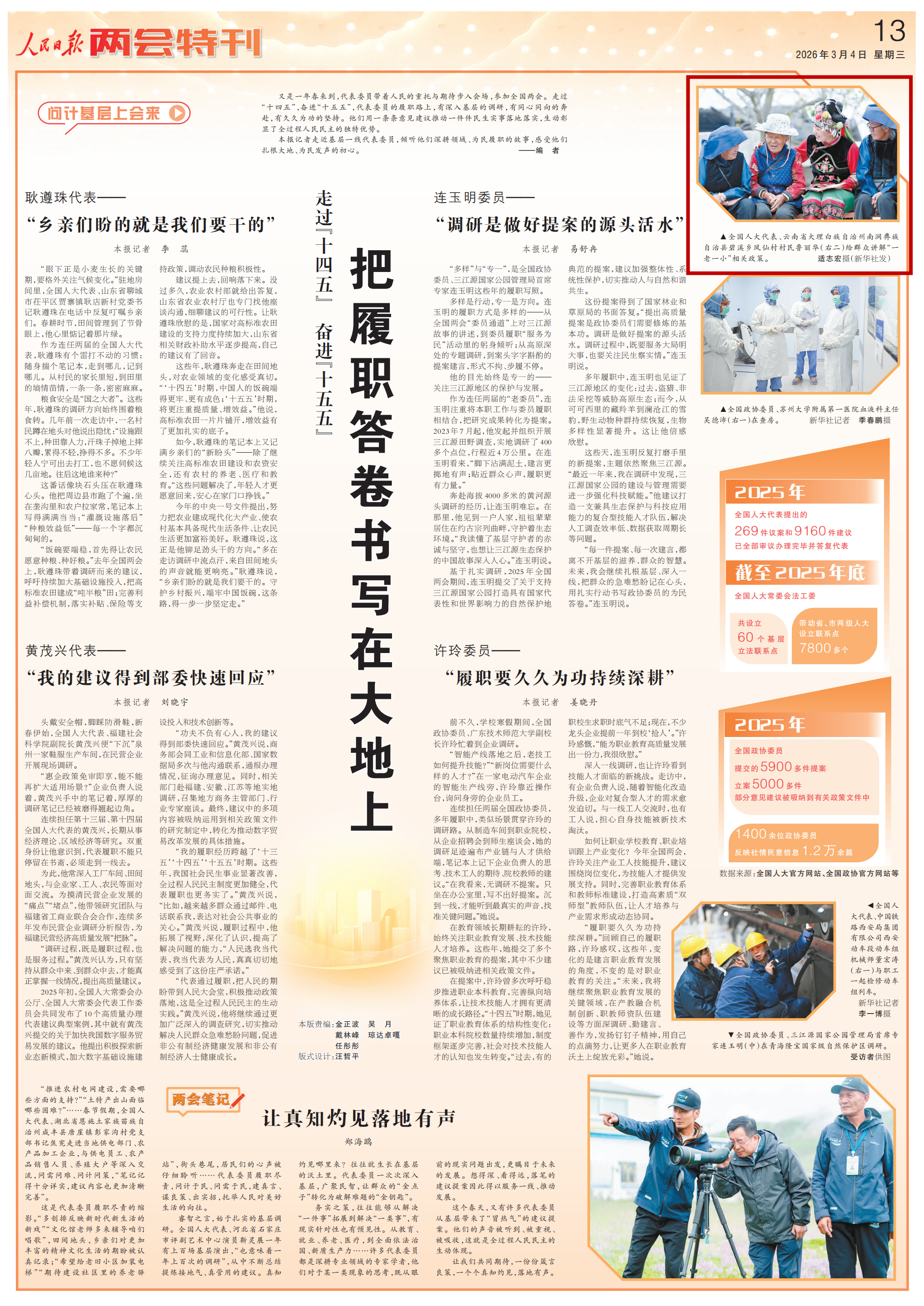 原标题:走过“十四五” 奋进“十五五” 把履职答卷书写在大地上(问计基层上会来)