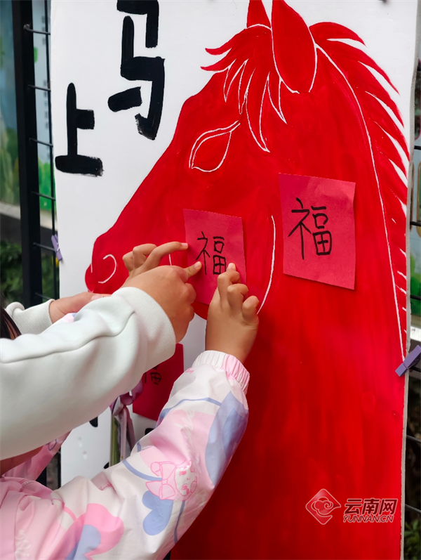 昆明市第十二幼儿园麻线营园区紧扣丙午马年主题,打造“瑞马迎春”红火之旅。孩子们通过“贴福字”“跃龙门”“摸吉祥物”等步骤入园,收获“马到成功”“平平安安”等美好寓意。各班还开展了“抽上上签”“欢乐套圈”“小马冲冲冲”等丰富活动,在喜庆互动中开启新学期。