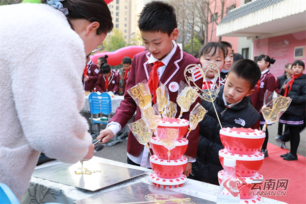 云波小学学生制作开学纪念糖人 校方供图