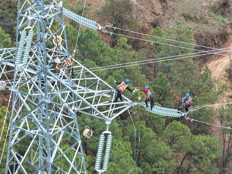 为高质量完成工程建设,曲靖供电局多方联动,高效破解道路通行等难题,提前两个月办结相关手续,聚焦天气变化、山区地形、施工人员管理等,8次优化施工方案,安全完成25次线路跨越,快速完成21.71公里线路导线展放,工程建设仅用时99天。