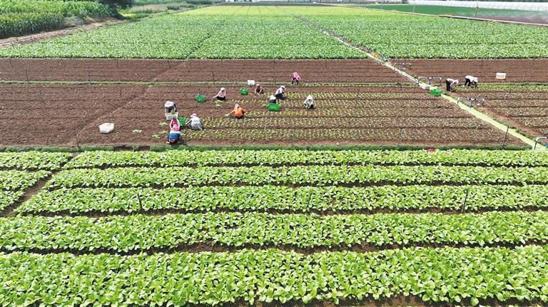 群众在蔬菜基地务工。