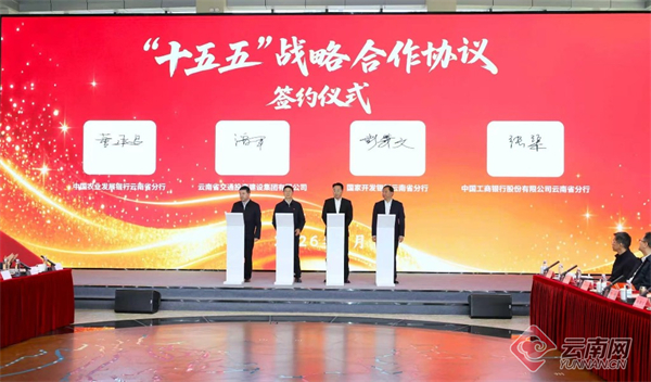 在集中签约仪式上,云南交投集团与国家开发银行云南省分行、农业发展银行云南省分行、工商银行云南省分行共同签署《“十五五”战略合作协议》;与农业银行云南省分行、进出口银行云南省分行、中国银行云南省分行、邮储银行云南省分行、兴业银行昆明分行、华夏银行昆明分行、富滇银行、平安银行昆明分行共同签署《勐醒至绿春高速公路项目银团贷款协议》。
