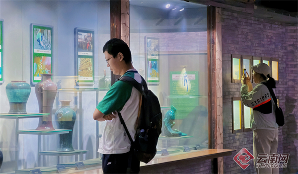 在陶瓷工艺展区,青年游客驻足凝视。