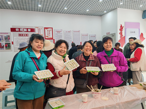 桑榆乐享添福祉,民生服务提质效。经过大家的一阵“忙碌”,一盘盘精美的饺子呈现在大家面前,老人们看着亲手制作的劳动成果,脸上洋溢着幸福满足的笑容。企退老人李阿姨激动地说道:“社区时时刻刻惦记着我们,不仅陪我们包饺子、拉家常,还贴心解决生活难题,这份关怀太暖心了,住在王家桥社区,我们既安心又幸福!”活动最后,老人们将各自制作的饺子带回家里煮吃。此次活动收获了辖区居民的一致好评,大家纷纷点赞社区贴心服务,认可党建引领下的基层治理实效。
