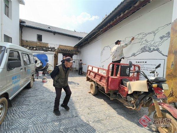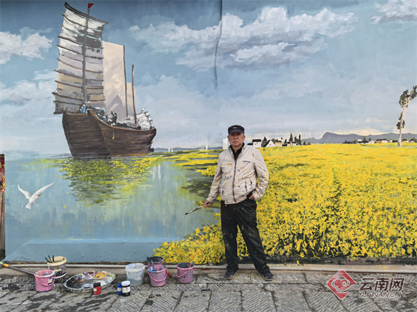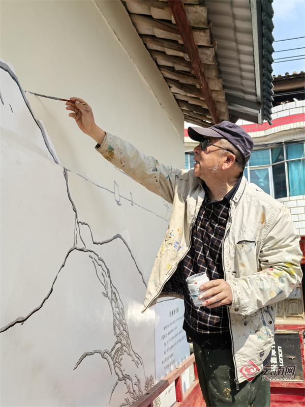 李昆武也画得更从容了。变电箱、墙角、老房子的山墙,都成了他的画布,他想在村中最大的一面墙上,画一幅讲述沧海桑田的滇池长卷。