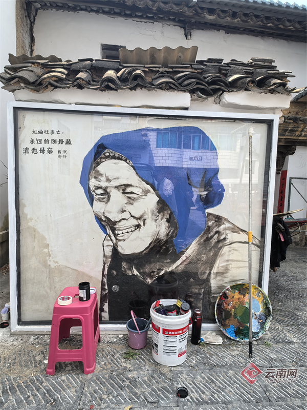 前年,法国的电视媒体专程来拍过。此后,远方的客人络绎不绝。意大利记者来了,美国纽约上海大学游学团来了,法国驻华大使馆文化参赞和驻成都总领事也来了。他们辗转来到这个滇池边的小村庄,站在村民家的墙前,看那些戴着阴丹蓝头巾的妇女、背着箩筐的孩子、互相搀扶的老夫妻。