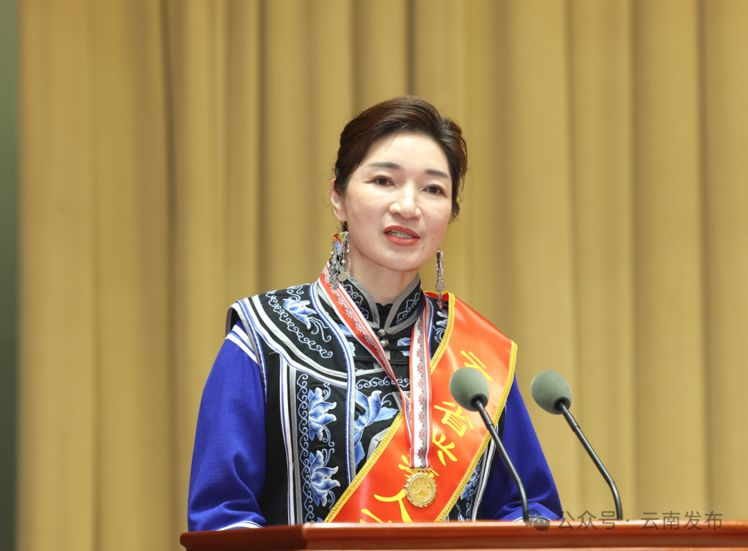 3月23日,云南省“兴滇人才奖”表彰大会在昆明举行。作为获奖代表,南华七彩彝绣文化传播有限责任公司董事长丁兰英、保山中咖食品有限公司董事长杨竹先后上台发言,分享自己的创业故事。