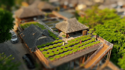 移轴镜头下 屋顶的晒场 劳作的茶农与传统民居