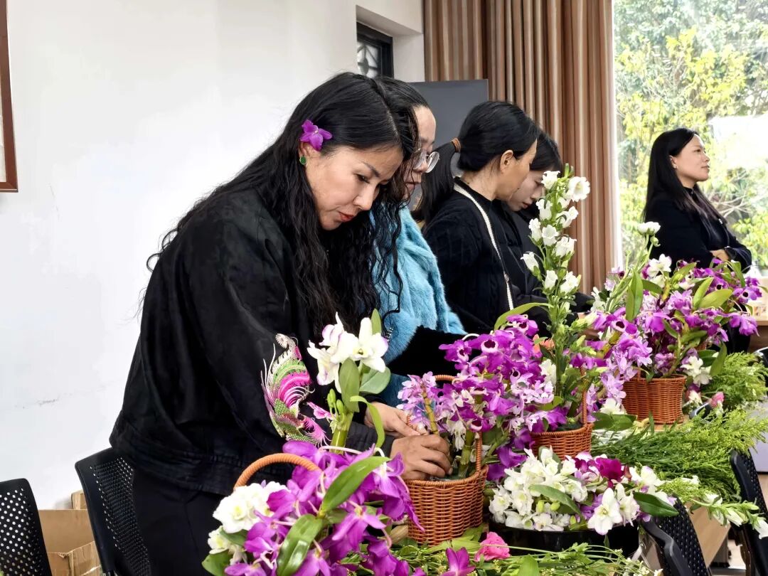 此次培训紧扣地方特色产业发展需求,精心设置课程,从石斛产业发展现状、花材特性、花艺基础知识,到东方自然风、西式插花两种风格作品示范,再到学员实操、现场点评,全程采取“理论+示范+实操+点评”模式,让零基础学员也能快速上手。