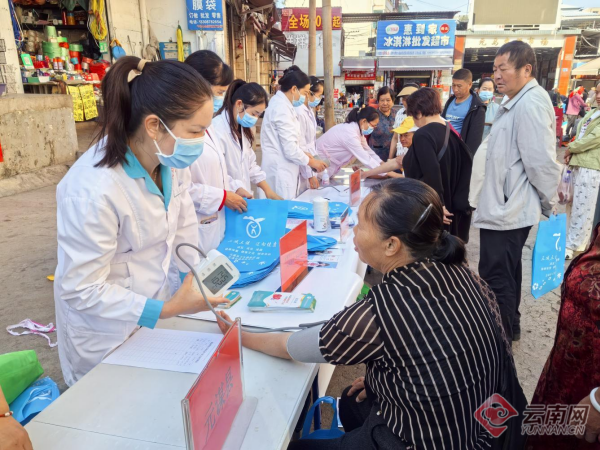 在昭通市巧家县,医务人员面向群众讲解结核病防治核心知识,普及传染途径、早期识别症状及诊疗惠民政策,同时为群众免费开展血压、血糖检测等健康体检服务。