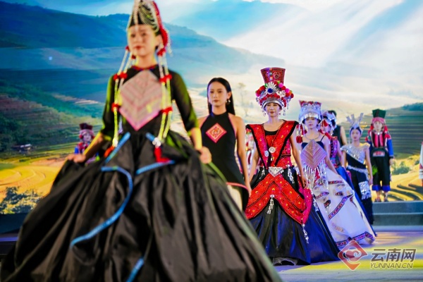 如果说白天的对唱活动是对传统文化的深情回望,那么27日晚间举行的民族时装“村秀”,则是古老技艺在新时代的创新表达。活动现场,红河州各县市的绣娘代表齐聚一堂,将承载着民族记忆的服饰搬上T台。舞台上,不仅有重现大黑彝族群迁徙历史的传统盛装,更有将“国潮元素”与花腰彝刺绣完美融合的现代服饰。
