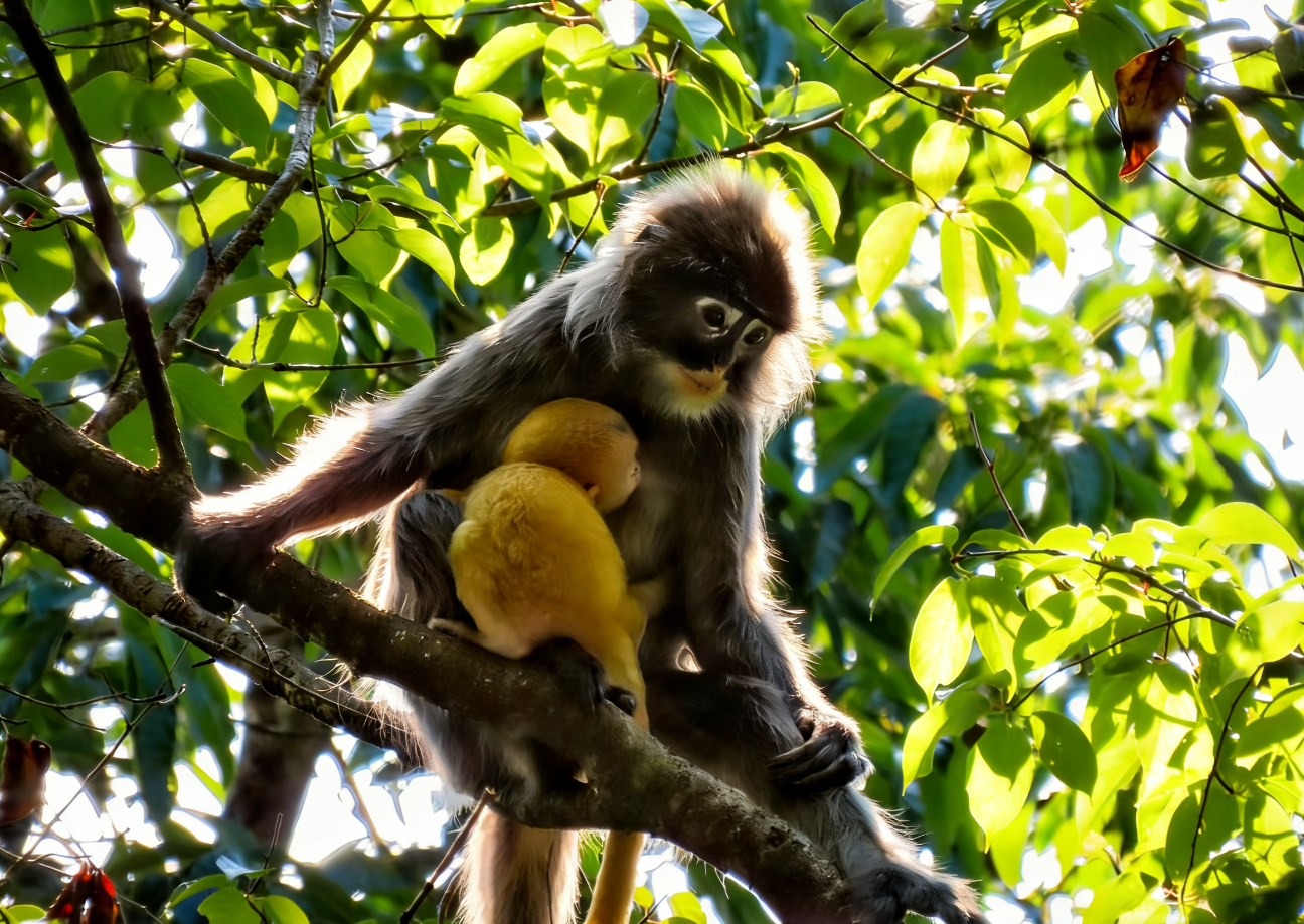 此次为期一年的监测,监测人员每月持续5天、每天近10个小时的深山蹲守,不仅摸清了中缅灰叶猴的饮食习惯,更见证了生命的奇迹。