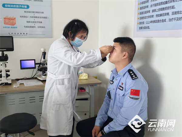 云南网讯(记者 刘宝琦 通讯员 冷静 李果玲)4月3日,云南德宏芒市边境管理大队联合芒市艾维正发眼科医院开展“守护‘视’界 情暖边关”眼健康专项活动,为民辅警提供专业、全面的眼部健康服务。