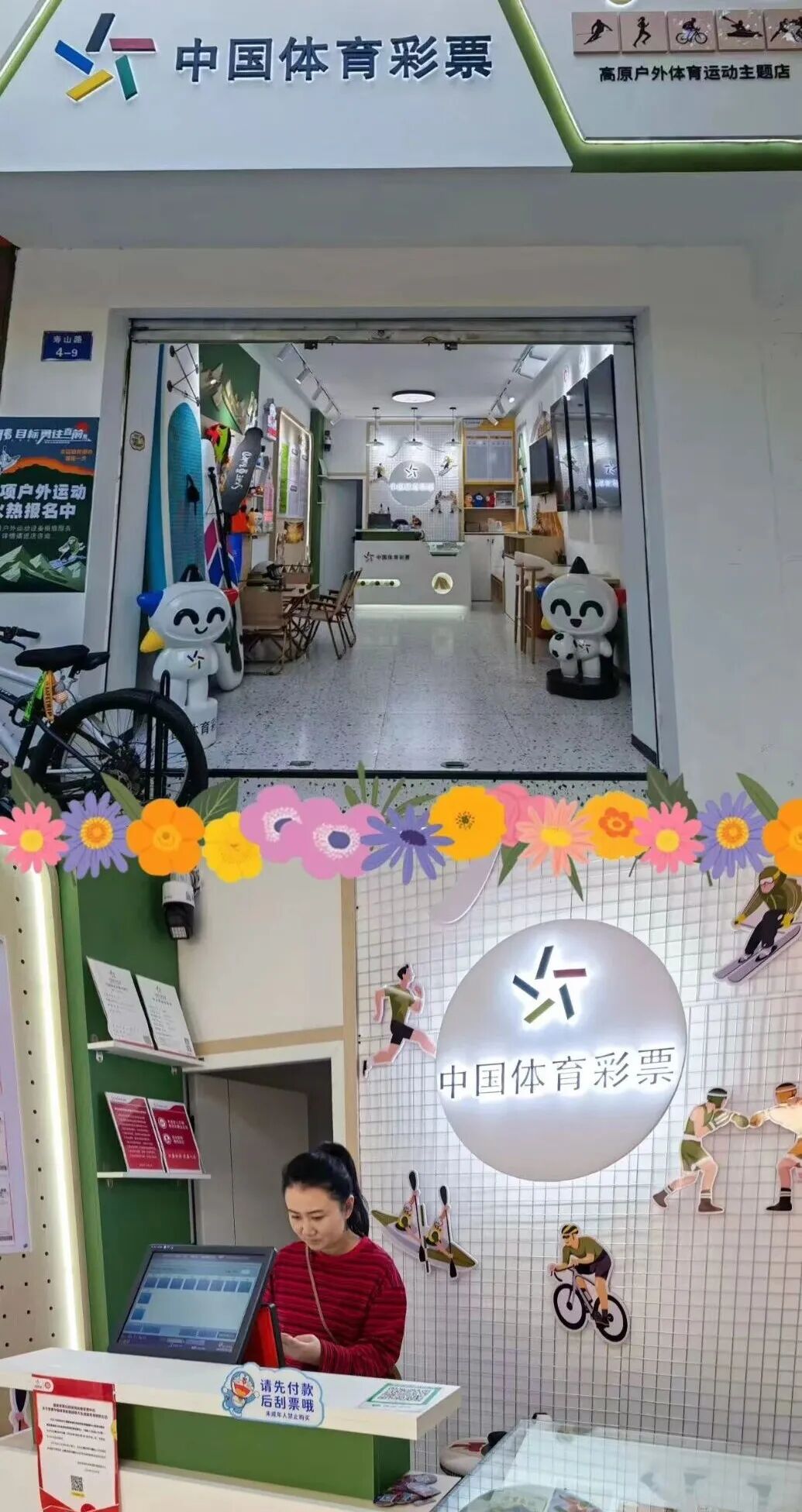 位于宜良县寿山路的5304290031实体店代销者以云南高原户外体育运动为主题,打造出别具一格的购彩空间。代销者热爱户外运动,将这份热爱融入店面设计,在店内整齐陈列各类体育彩票,同时展示登山装备、户外器械以及参赛奖牌,把高原活力与运动精神传递给每一位进店者。门店以特色场景营造轻松愉悦的购彩氛围,让公益体彩与户外运动深度相融,既展现体彩的公益初心,也传递健康向上的生活态度,为体彩阵地注入新鲜活力,让更多人在运动与公益中收获快乐与希望。