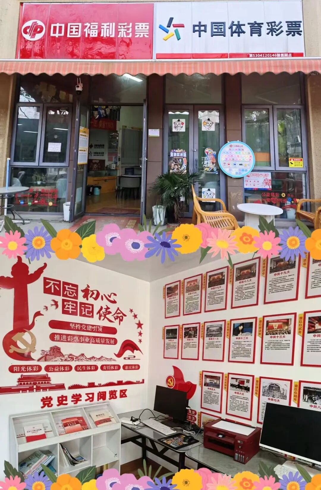 昆明销售管理四部的特色门店,用双层体彩空间拓宽服务边界,以云南高原户外主题彰显活力,用温馨体彩“会客厅”拉近人心,凭红色主题传承信仰力量。