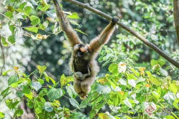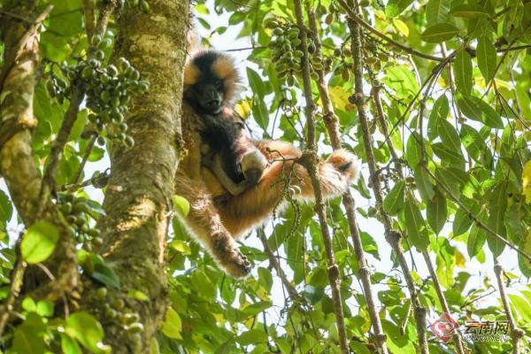 云南网讯(记者 胡晓蓉)近日,无量山国家级自然保护区工作人员在保护区开展巡护监测时,发现景东大寨子区域的一只雌性西黑冠长臂猿怀里多了一只刚出生的猿宝宝。据中山大学生命科学学院教授范朋飞介绍,此次产仔的西黑冠长臂猿在2003年初次开展监测时就已成年,至今年龄至少30岁,属高龄产仔,非常罕见。