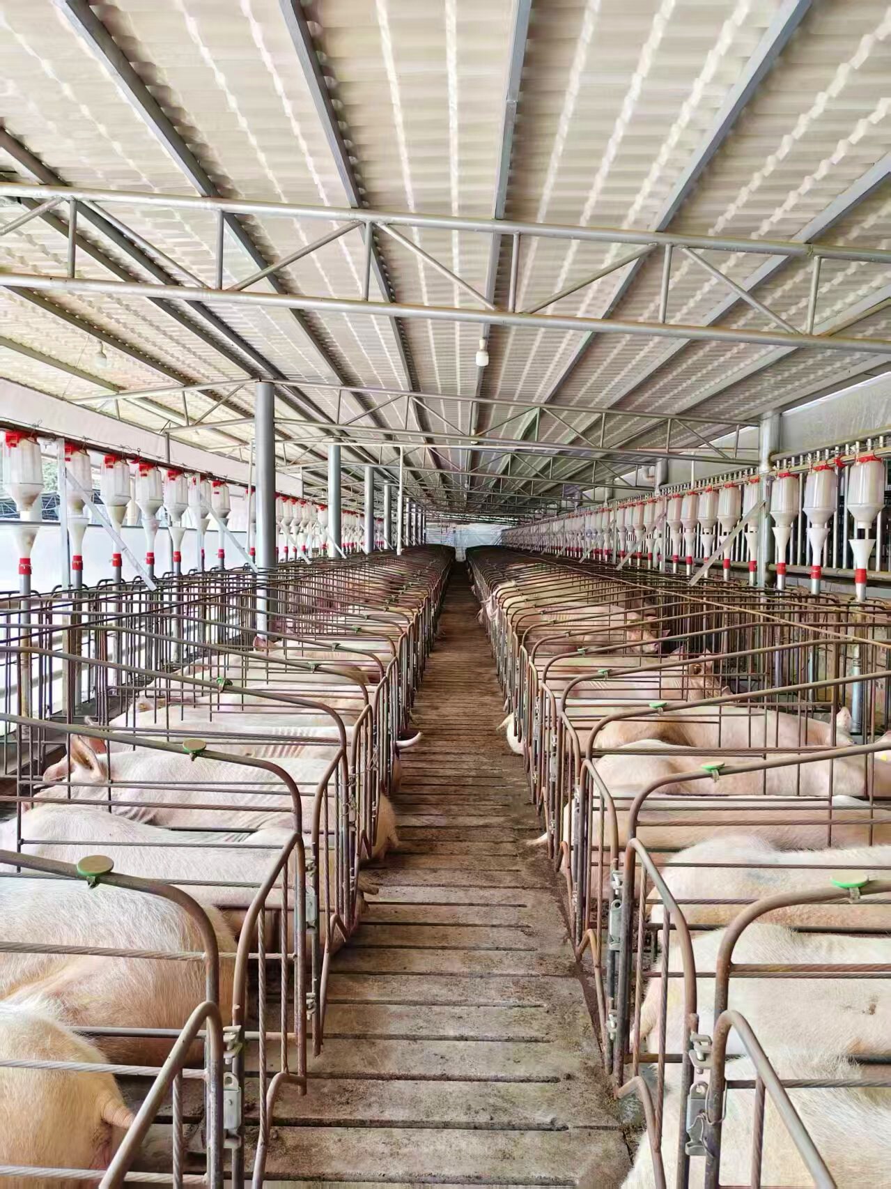 养殖场现已实现全自动饲喂系统精准配比饲料,温度、湿度实时监测调节,防疫消杀等环节全程科技化。特别是在2025年8月非洲猪瘟疫情形势严峻期间,得益于严格的生物安全防控体系和科技化手段,该养殖场没有发生一例疫情,有力地保障了生产安全和稳产保供,成为文山州边境地区应对公共卫生风险、保障重要农产品供给的典型示范。目前,养殖场共存栏能繁母猪3500头,每头母猪每年产崽2胎,每胎14至17头,仔猪非正常死亡率稳定控制在3%—5%。这一水平,在整个文山州的规模化养殖场中都处于第一梯队。