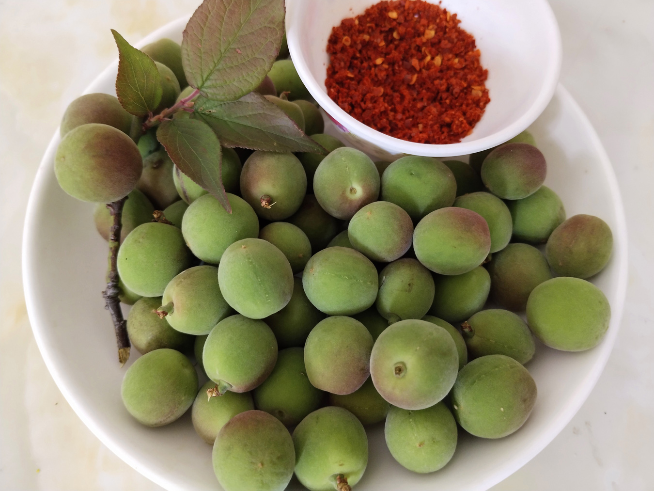 对于板桥人来说,青梅最地道、最惬意的吃法,莫过于枝头现摘现吃。从树上轻摘一颗饱满青梅,擦去表面薄霜浮尘,不用腌制,也不用复杂烹煮,蘸上一勺胡辣子面便可入口。齿尖轻咬,脆嫩果肉汁水迸发,酸爽清冽瞬间溢满唇齿,与胡辣子的醇厚香辣相融,酸香与辣意在舌尖交织,鲜爽过瘾,余味悠长。这种最简单的吃法,最能留住青梅本味,也尽显板桥乡村的随性烟火气。