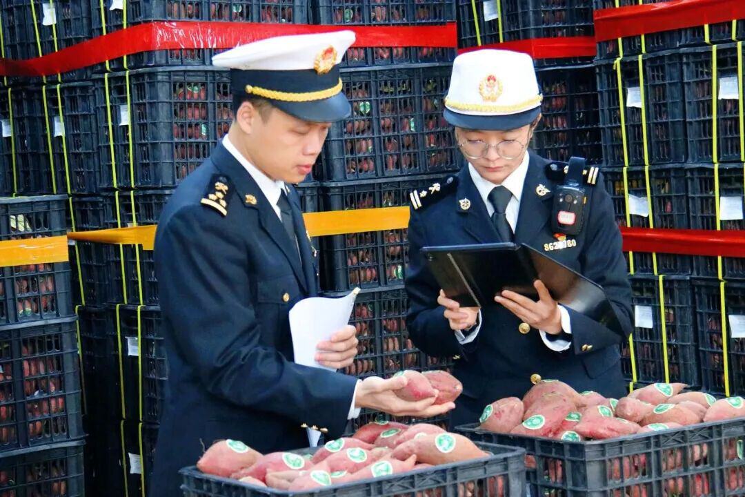 为助力文山红薯顺利出口,天保海关贯彻落实昆明海关《支持农食产品出口三年专项行动细化措施和任务分工》要求,深入田间地头、生产车间开展“关长送政策上门”活动,指导企业规范完成报关单位备案申请,强化农食产品种植源头质量管控,健全从种植、加工、储存到运输的全过程质量管理体系。同时,设立农产品属地查检“绿色通道”,提供“预约查检”“海关移动查检”和检验检疫证书“云签发”等服务,实现企业自主申报、海关高效查验、系统快速出证,保障红薯保鲜高效出口。