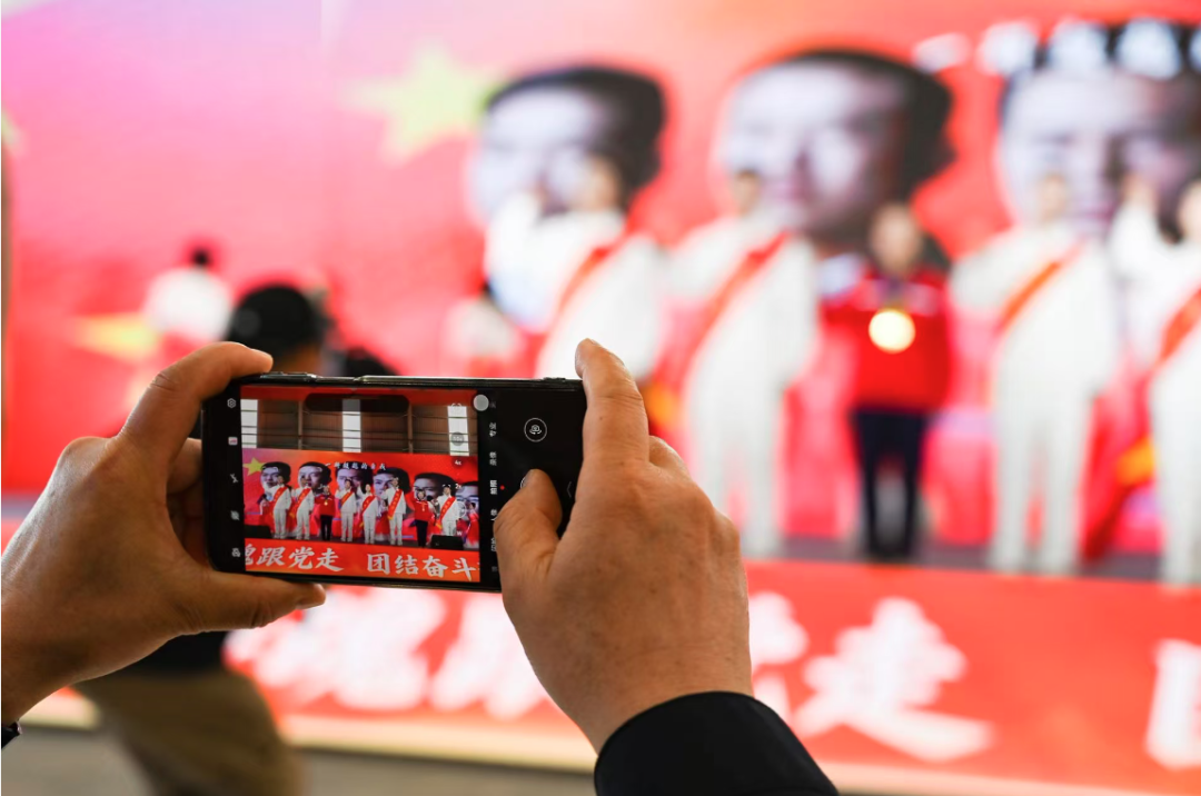 “我和我的祖国/一刻也不能分割/无论我走到哪里/都留下一首赞歌……”伴随着熟悉的旋律,宣讲现场响起高亢的歌声。