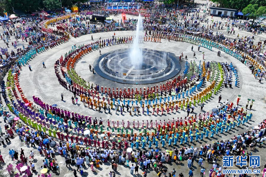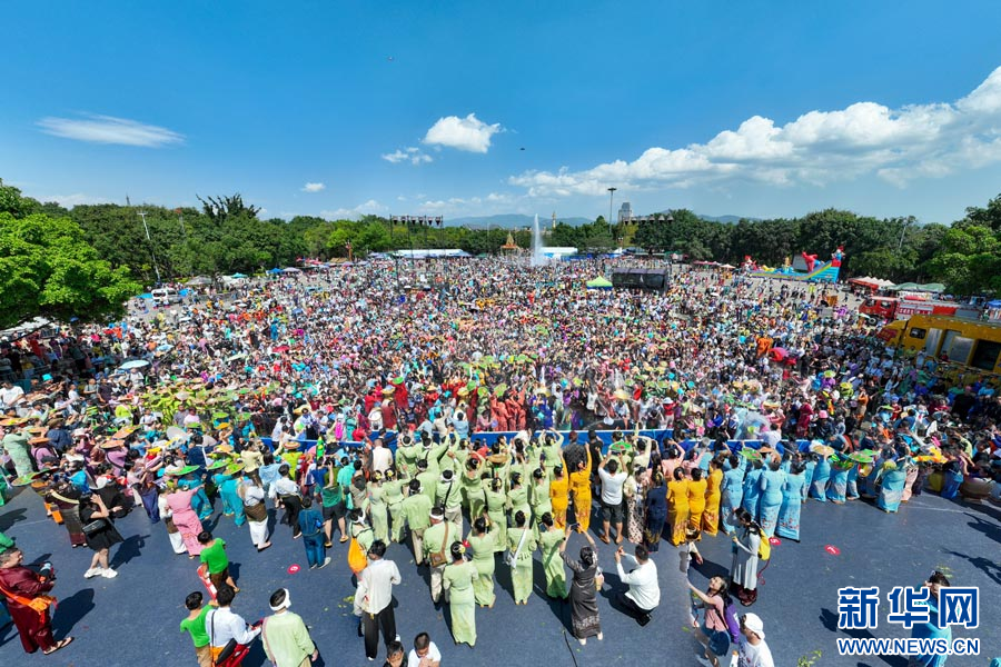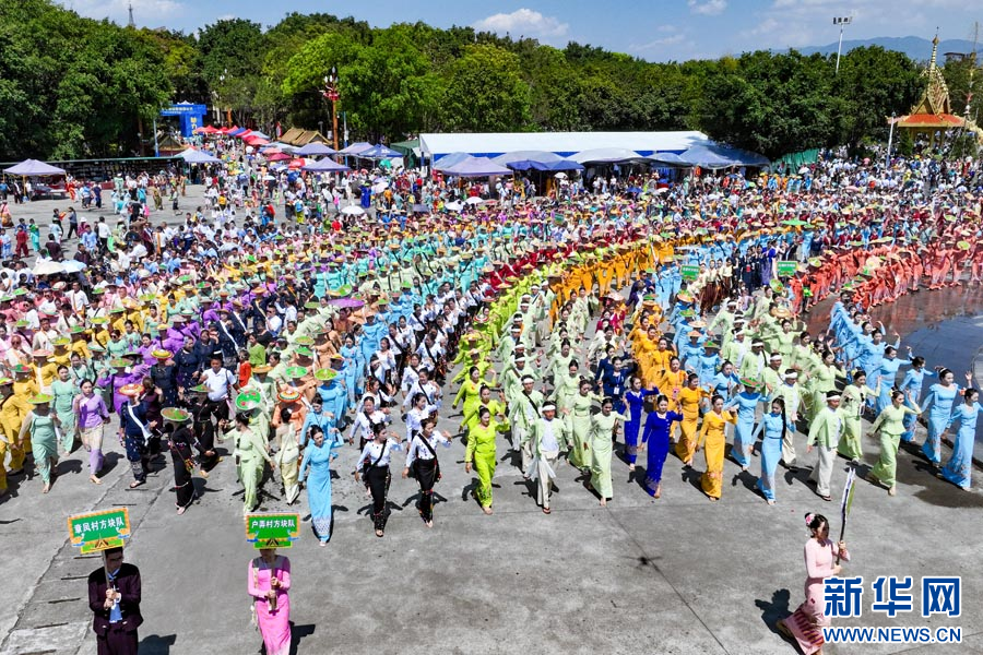 傣族群众齐跳“嘎伴光”(4月11日摄)。新华网发(段宗智 摄)