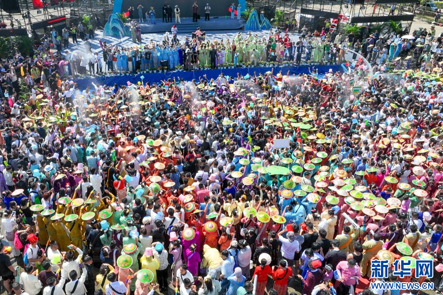 各族群众在民族文化广场泼水送祝福(4月11日摄)。新华网发(孔扎选晶 摄)